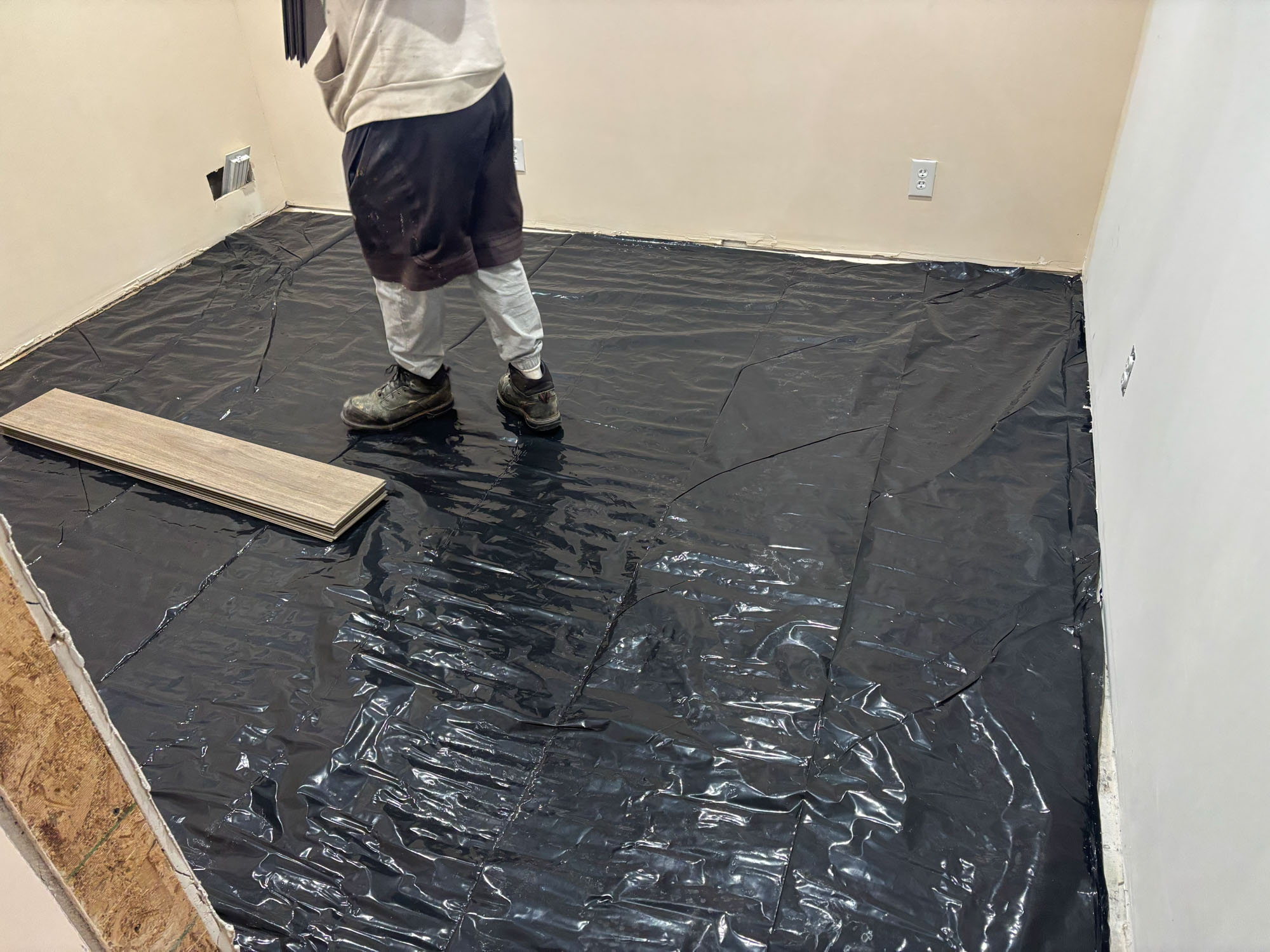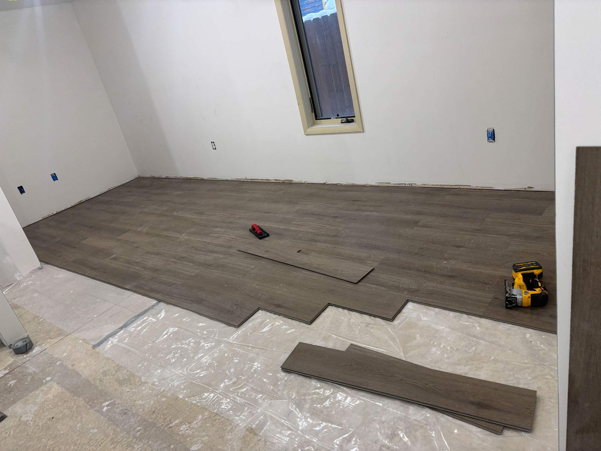 Flooring, trim work, drywall, painting, and custom carpentry.